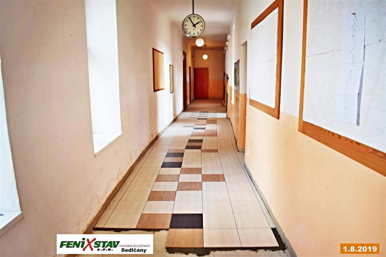 Ve školní chodbě a kabinetech byla položena nová podlahová krytina - keramická dlažba.
