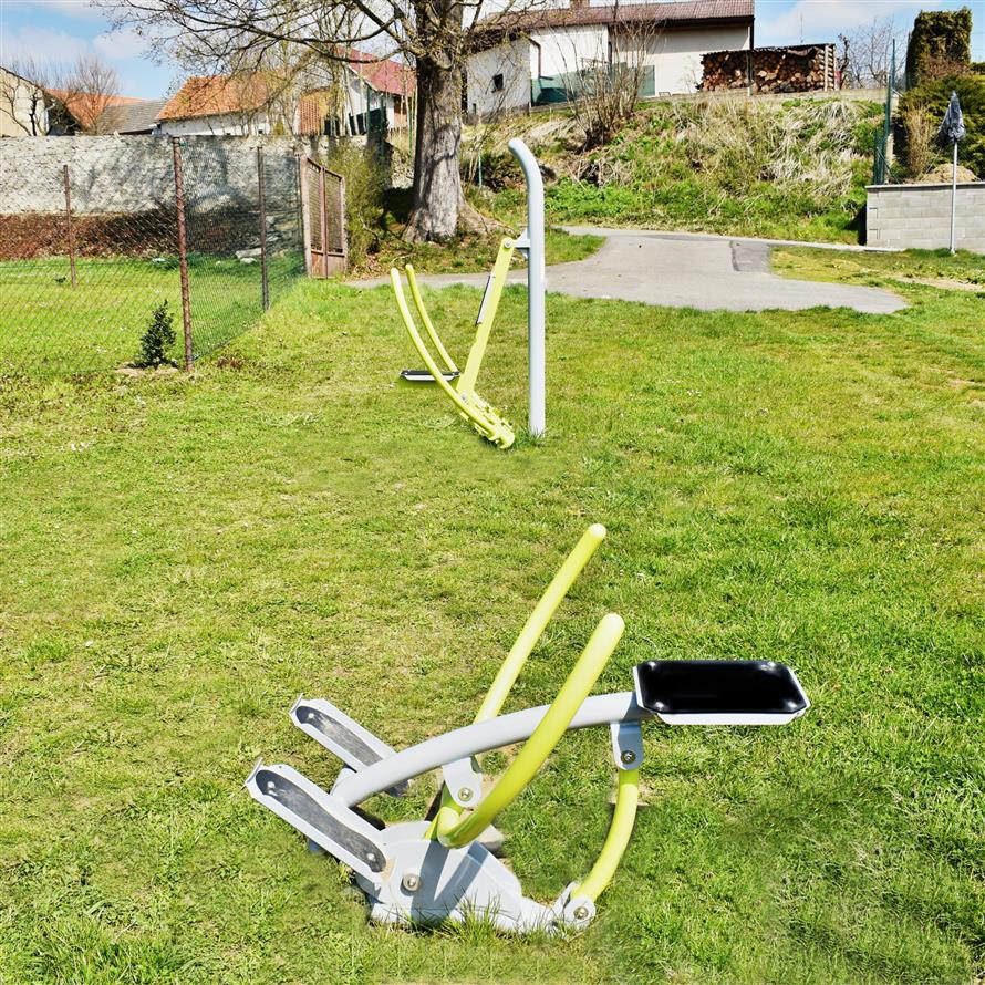 JESENICE Obecní zastupitelstvo letos schválilo vybudování venkovního fitness hřiště za 512 000 Kč pro všechny generace se samostatně stojícími cvičebními stroji na travnatém prostoru navazujícína sportovní areál Sokola Jesenice, areál mateřské školy a trasu Krčínovy cyklostezky. Cvičení na