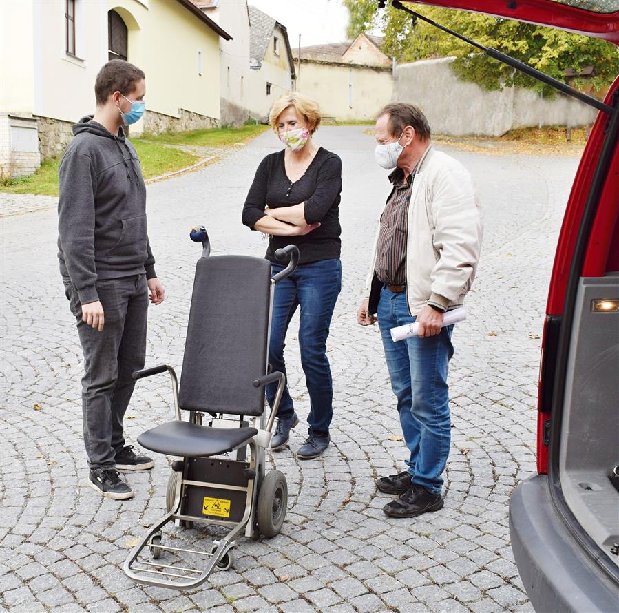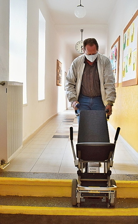 Univerzální zařízení - schodolez C-MAX s integrovanou sedačkou je vybaven řídící elektronikou, oddělitelnou baterií a je jednoduše rozložitelný a transportovatelný. Pomocí jedné doprovodné osoby snadno zdolává všechna schodiště, včetně točitých a jiné terénní stupně (nastupování do autobusu aj.).