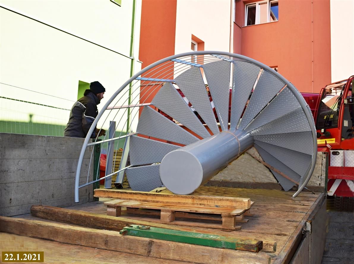 Výstavba vnějšího únikového schodiště 22.1.2021