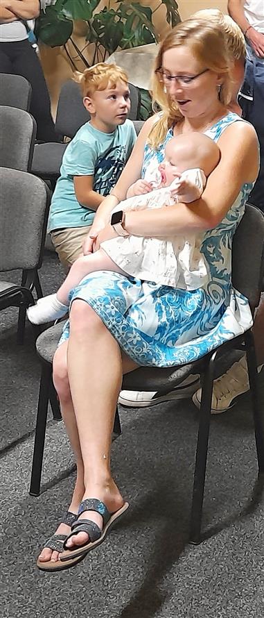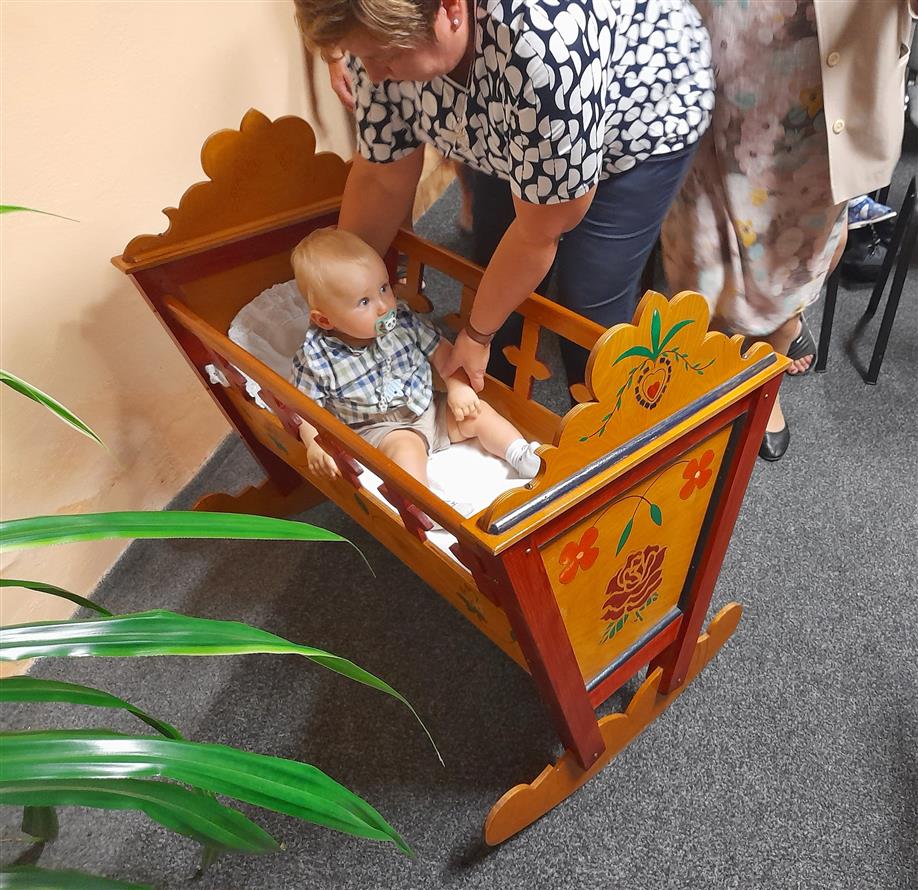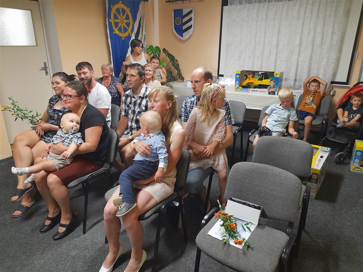 Přebrali pro nového občánka pamětní list, upomínkový předmět se znakem obce a věcný dar.