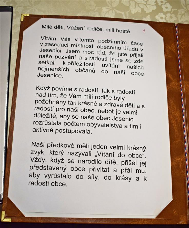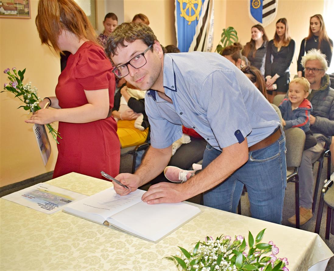 Rodiče přivítání nově narozeného občánka do života obce potvrzují zápisem do pamětní knihy